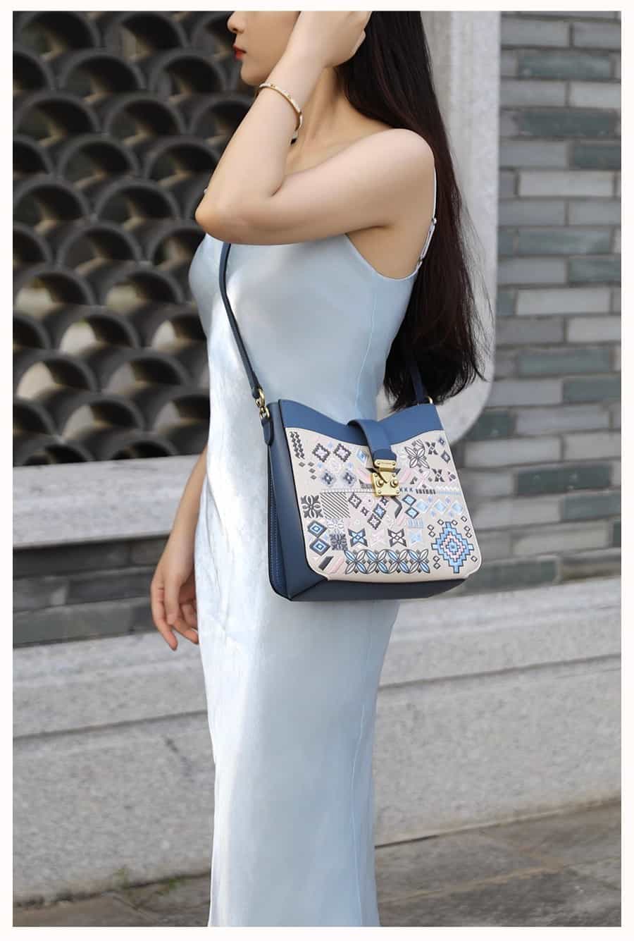 Chinese-Style Traditional Embroidered Leather Shoulder Bag
